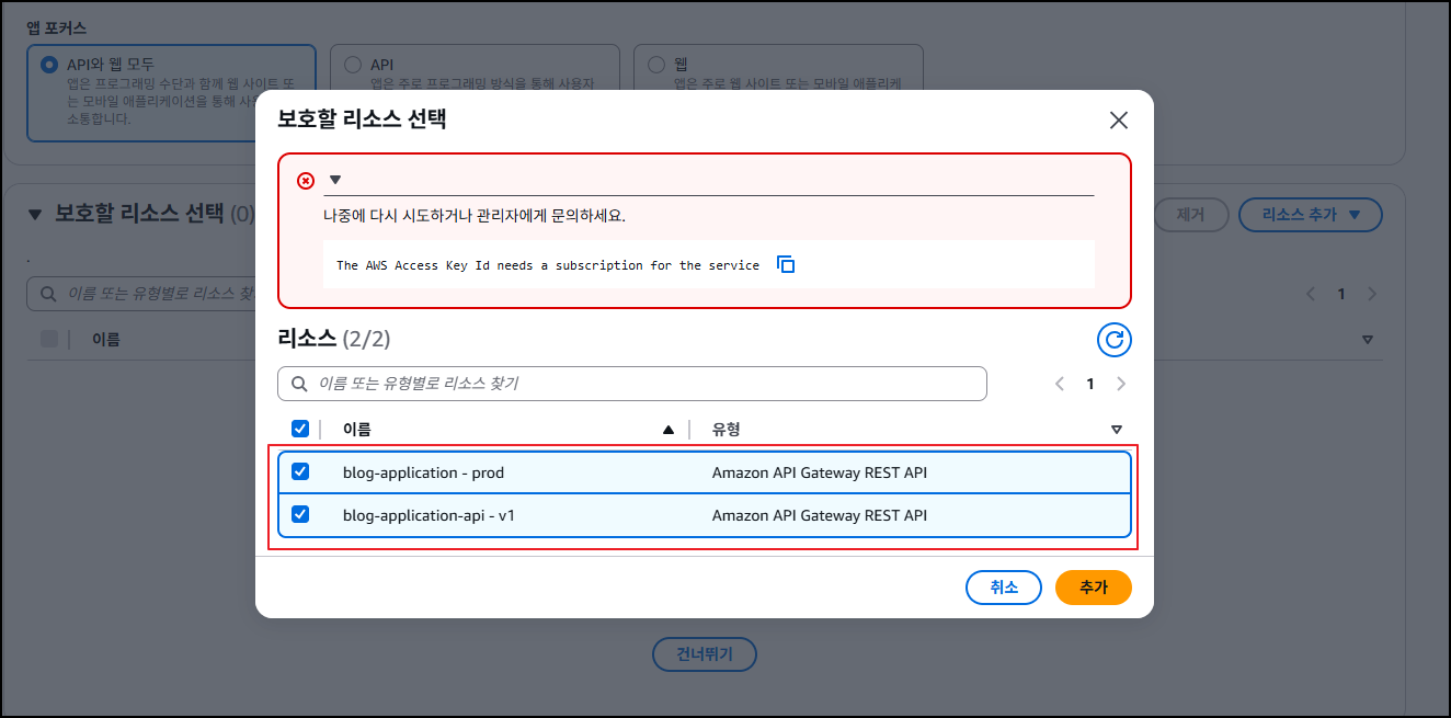 * SQL injection 공격에 영향이 있는 경로는 blog-application-api에 포함되어 있으나 모든 리소스를 보호 리소스로 선택했다