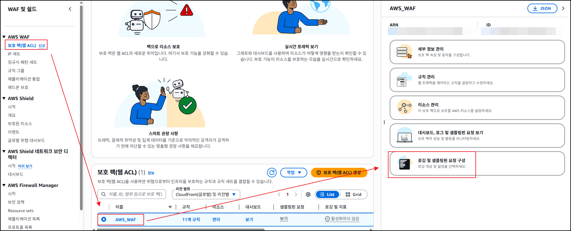 - AWS WAF는 기본적으로 로그 저장이 안돼서 설정을 해줘야한다