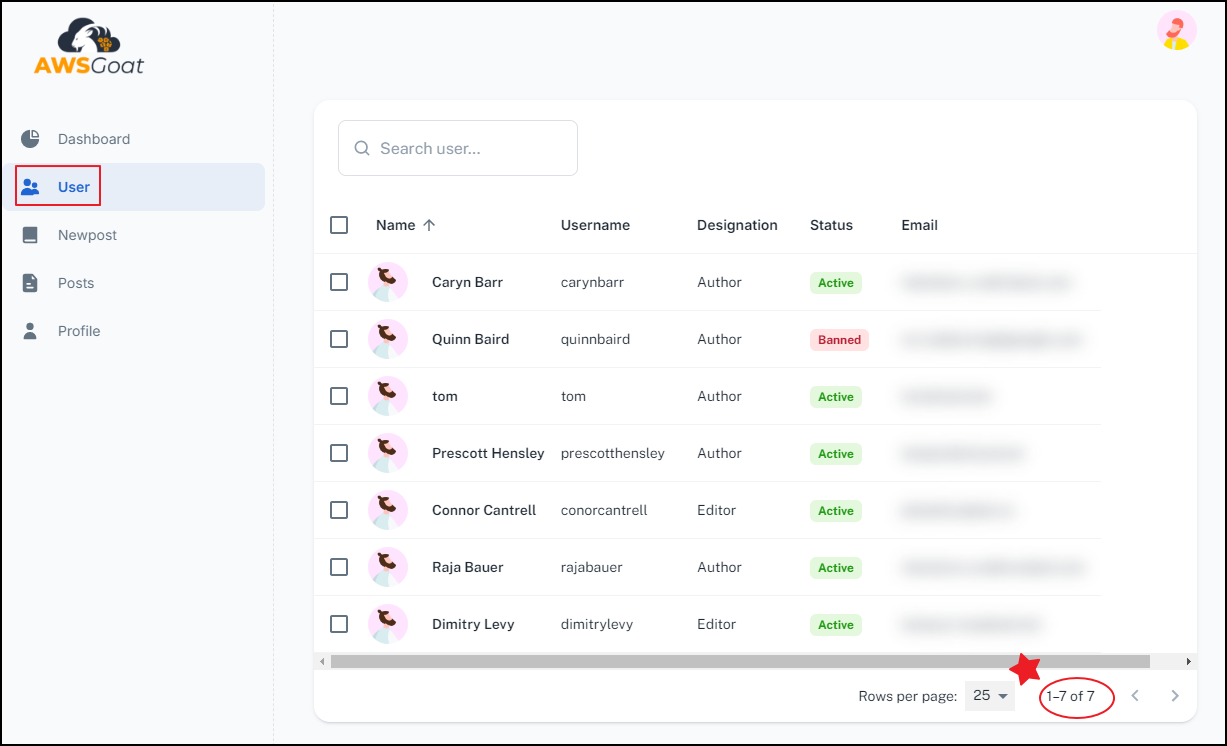 - User 게시판에 들어가면 7개의 User 정보가 출력된다