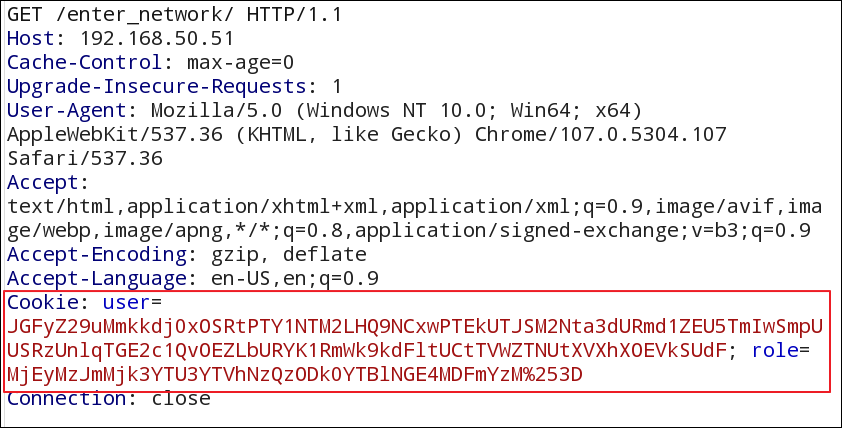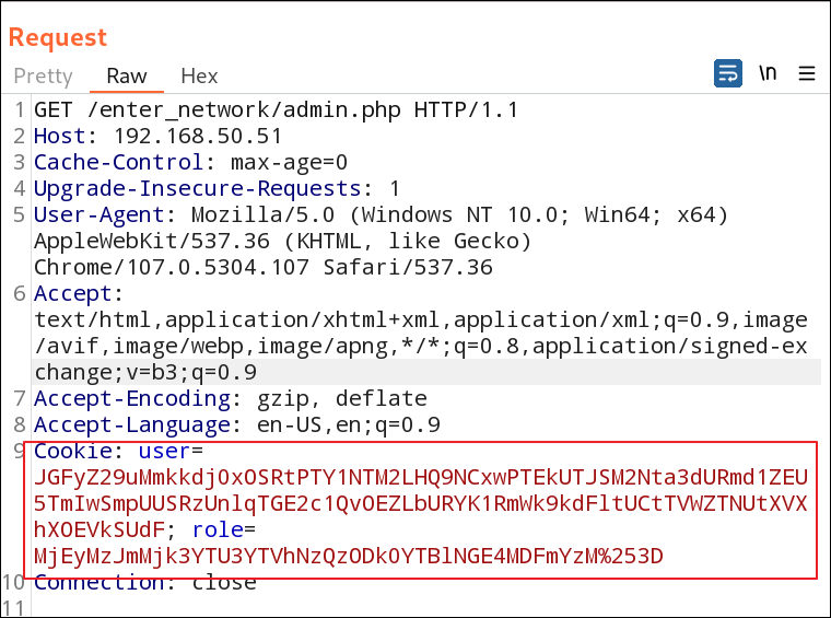 - http 요청 Cookie 헤더를 보면 user, role 파라미터 존재
