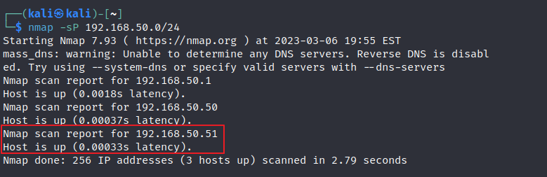 - 192.168.50.50은 Kali(공격자) IP로 Target IP는 192.168.50.51 확인