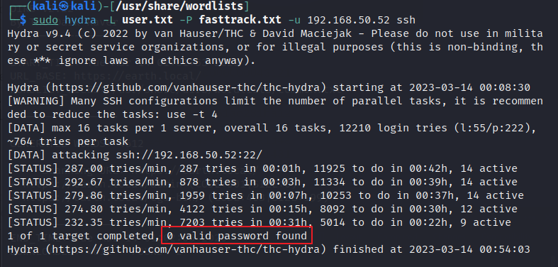 * -u 옵션은 loop around users, not passwords (사용자 목록 기준으로 대입한다는 건가..? 여튼 효과적이라고 함)