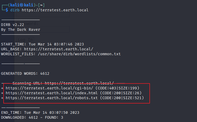 - dirb 툴을 통한 하위 디렉터리 검색