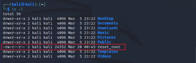 - reset_root 파일을 분석하기 위해 kali로 전송