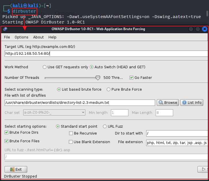 * -u 옵션은 대상 경로 지정 / FUZZ 위치에 임의값 삽입