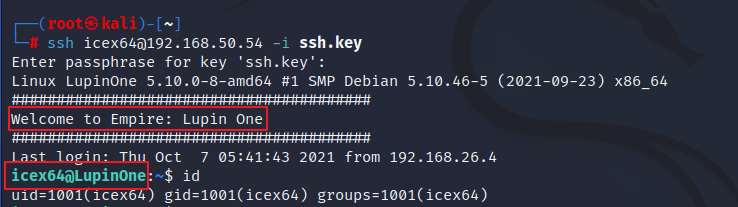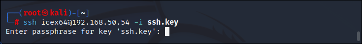 - 권한을 축소한 SSH 개인키를 이용하여 SSH 접근했으나 개인키 암호(passphrase) 필요
