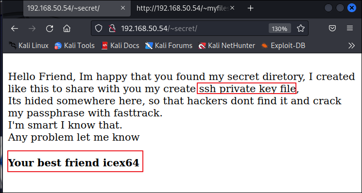 - icex64는 /~secret/ 경로에서 가장 친한 친구라고 알려준 정보로 다른 계정으로 접근했을 때는 계정 패스워드를 요구