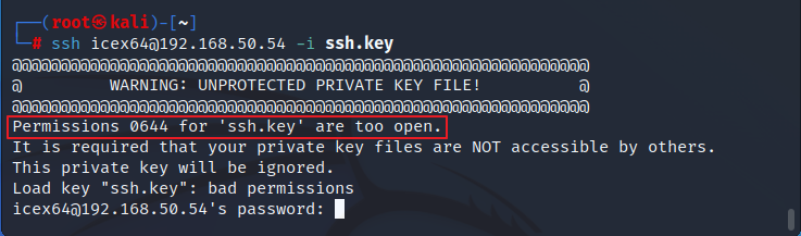 - 복호화된 키를 저장하고 SSH 접근하면 개인키 권한이 너무 열려있어서 무시된다는 경고 발생