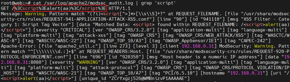* URL 경로에 XSS 공격 구문 탐지