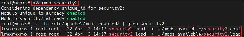 * a2enmod 명령으로 모듈을 활성화하면 /etc/apache2/mods-enabled 디렉터리에 심볼릭 링크 생성