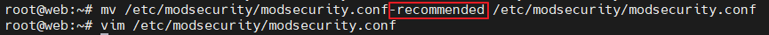 - 설정 기본 파일인 /etc/modsecurity/modsecurity.conf-recommended을 참고하도록 파일명 변경 & 설정 변경