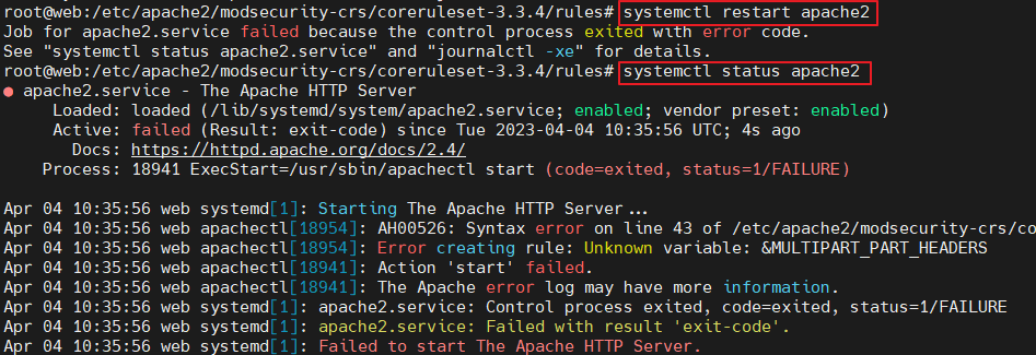 * coreruleset-3.3.4/rules/REQUEST-922-MULTIPART-ATTACK.conf 에서 에러 발생