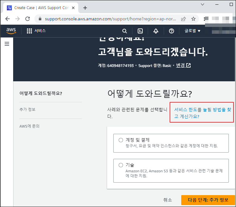 3) '서비스 한도를 늘릴 방법을 찾고 계신가요?' 선택